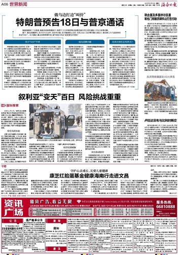 特朗普是在乘坐总统专机“空军一号”从佛罗里达返回首都华盛顿时说,他18日与普京就乌克兰危机通话。他说,双方将讨论土地等问题,周末已经为此“做了很多准备”,包括讨论俄乌“分割特定资产”。