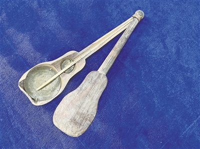 此外,海南民俗博物馆还藏有一件海南民间戥子,用竹片挖制的盒子长26.5厘米,最宽处6厘米,因材质原因柄头铜钉铆得太紧会开裂,故而在由细到粗的长柄上加装精巧、用于扣紧盒子的9毫米篾圈,笔者敢说小小篾箍是匠人巧思和能手的天作之合,能完好留存至今也实属不易。另有一件戥子空盒,是多年前高永南馆长在海口石山新香村踏访古村时,一位朋友送给他的。