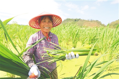 本报定城3月19日电(海南日报全媒体记者李豌 通讯员程守满)“地头收购价4元一斤,市场价能到12元一斤,尤其在北上广反馈特别好。”3月19日,定安县翰林镇深水村的反季节茭白种植基地里,在茭白“绿海”中忙碌的江西农人傅利才托起一株足有半臂长的茭白,向海南日报全媒体记者介绍。眼下,该种植基地120亩茭白正迎来采收期,工人们正穿着水靴,穿梭在茭白田中,镰刀起落间,白嫩如玉的茭白接连入筐,即将跨越山海奔赴上海、福建等内地市场,今年预计产值可达140万元。