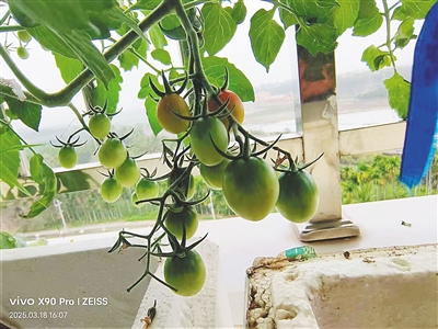 陈佳妮在阳台种植的新品种圣女果。