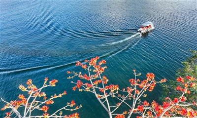 在昌江黎族自治县七叉镇尼下村尼下码头昌化江畔,木棉花陆续绽放,美不胜收。(资料图)