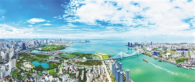 海口湾一带以“公园+商圈”模式,促进生态资源转化为商业效益。