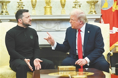 2月28日,在美国华盛顿白宫,美国总统特朗普与乌克兰总统泽连斯基爆发争吵。新华社/法新