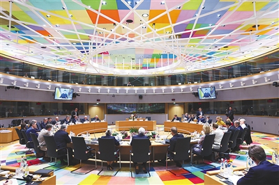 图为3月20日举行的比利时布鲁塞尔举行的欧盟峰会现场。新华社发