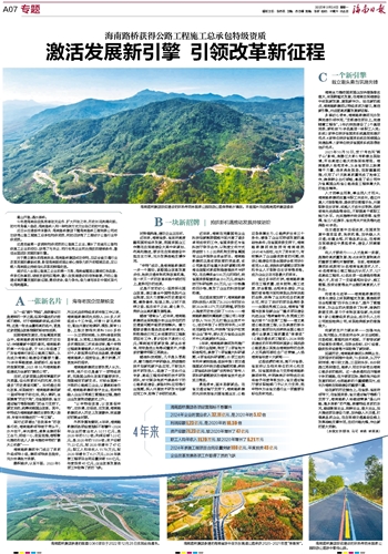 站在新的历史舞台上,在省委、省政府领导下,在省国资委、省交通运输厅等部门支持下,海南路桥人将继续秉承“逢山开路、遇水架桥”的气魄,乘着特级资质的东风,继续聚焦主业、深耕主业、做大主业,加大推进项目建设力度,加快融入大交通,打造高品质企业,在自贸港交通基础设施上发挥战略支撑作用,当好开路先锋,作出新的更大贡献。