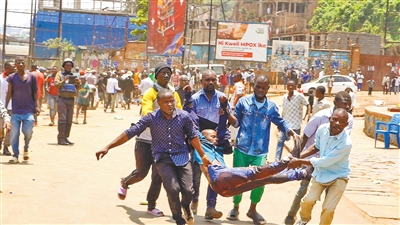 人们在刚果(金)东部南基伍省首府布卡武市爆炸事件现场搬运伤员。新华社发