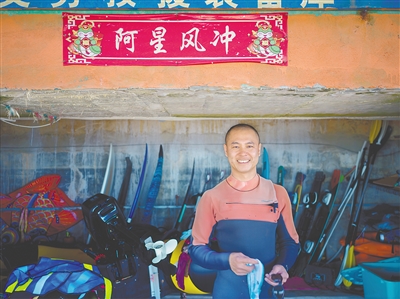 俱乐部开业后,客流逐步增加,多的时候一天有20多人体验风筝冲浪,一年能接待上千名游客。“大部分是北京、上海、广州等地的游客,每年还会接待一些国际友人。因为博鳌的环境很好,有时过了6月,客人还会继续留下来,体验本地的生活。”阿星说,他有七八名员工,也都是国内的风筝冲浪爱好者。