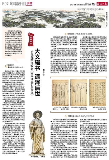 《宋苏文忠公居儋录》记录了海南地理环境、风土人情及苏轼劝农、兴学的政绩,展现了他“心系黎汉”的情怀。苏东坡的诗文,还记录了他推广中原农耕文明、破除陈腐迷信思想,开掘水源解决民生困境、更广施药物普惠百姓的事迹。