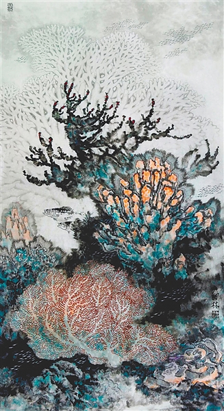 吴地林国画《海底奇葩》。