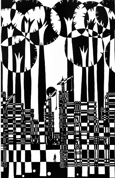 吴地林版画《崛起》。