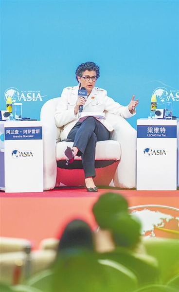 阿兰查·冈萨雷斯表示,此次参加博鳌亚洲论坛年会,了解到亚洲地区的经济一体化进程,也看到了诸多不同观点碰撞,证明了世界贸易对很多国家都非常重要,彰显了建设自由贸易区(港)的重要性。