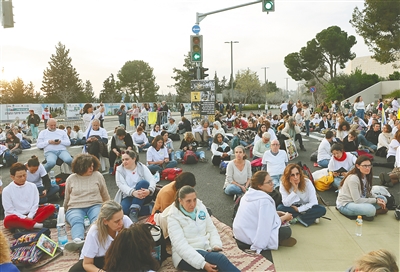 3月25日,人们在位于耶路撒冷的以色列议会附近参加示威活动。新华社发