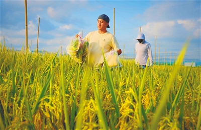 3月29日,在三亚崖州南繁育种基地,崖州湾国家实验室科研人员在田间采集实验材料,准备拿回实验室进行脱粒测产量。南繁育种基地是农业科技创新的前沿阵地,也是我国种业振兴的重要支撑,这里孕育的新种良种,从实验室走向田间地头,从海南岛撒向全国各地。海南日报全媒体记者 张茂 摄