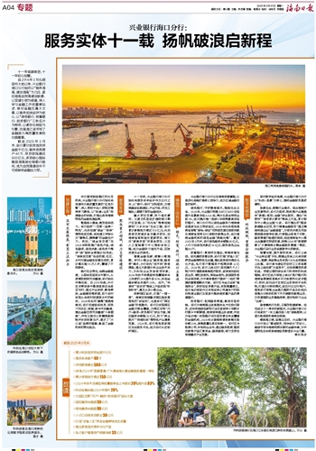 十一年来,兴业银行海口分行始终将服务实体经济作为立行之本,以“商行+投行”双轮驱动,为海南基础设施建设、产业升级、民生工程注入源源不断的金融活水。