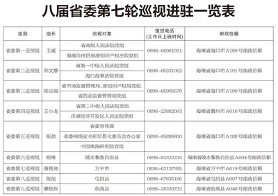 据悉,本轮巡视为期3个月,期间9个省委巡视组均设立专门值班电话、专门邮政信箱,并公布“海南码上巡”微信二维码,主要受理反映被巡视党组织领导班子及其成员、下一级党组织主要负责人和重要岗位领导干部问题的来信来电来访,重点是关于违反“六大纪律”以及巡视整改等方面的举报和反映。对其他与巡视工作无直接关系的个人诉求、涉法涉诉等信访问题,将按照分级负责、属地管理原则,转交有关单位办理。巡视组现场受理群众来信、来电、来访时间截止到6月9日,“海南码上巡”信访截止时间为6月20日。