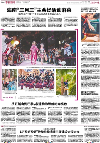 今年的“三月三”活动,以“铸牢中华民族共同体意识 共绘民族团结进步新画卷”为主题,在五指山市主会场以及海口市、三亚市、东方市、省政府驻京办等16个分会场相继组织了多项内容丰富、内涵深刻、形式新颖的活动,有力促进文旅融合,拉动旅游消费,助力全省一季度“开门红”,为各族同胞和八方宾朋奉献了一场主线聚焦、精彩纷呈、热烈祥和的民族文化盛宴和民族团结盛会。