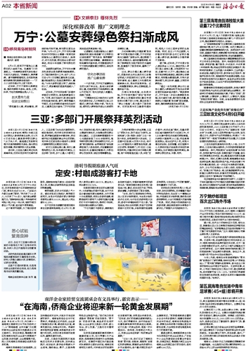 说起祭扫新风尚,万宁市长丰镇东和居委会委员蔡辉鸿感触颇深。为了做好森林防火工作,他于3月30日至4月5日在辖区墓地周边巡查,重点检查祭扫人员是否携带明火、鞭炮。“今年大家祭扫更文明了,烧纸钱的少了,燃放鞭炮的更是明显减少。”他说。