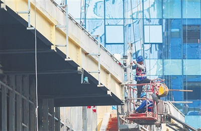 日前,位于海口江东新区总部经济区的江东天地项目施工现场,工人在作业。