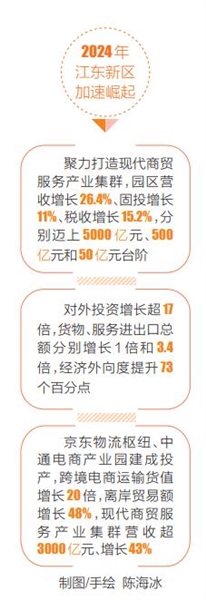 以链式效应带动产业集群发展,海口江东新区在项目谋划储备过程中,聚焦产业强链补链延链,推动企业集中、产业集聚、资源集约。2024年,江东新区新增招引中矿国链、中海化学等相关企业58家,现代商贸服务产业集群年度营收规模达3000亿元,同比增长43%。