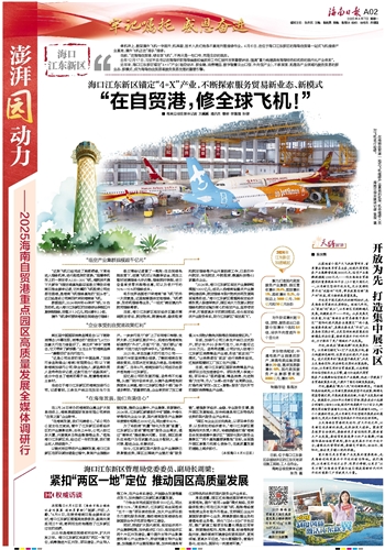 “2024年,海口江东新区临空产业集群规模超1000亿元,成功入选海南省重点产业集群创建名单,航空维修与现代物流协同发展局面逐渐形成。”海口江东新区管理局临空经济部负责人陈建军表示,园区将大力发展以航空维修和航空运输为核心的临空产业,坚持客货并举,打造更高水平的航空枢纽,优化临空经济产业服务体系,助力江东新区“临空起飞”。