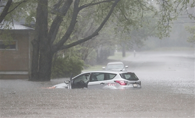 图为4月5日在美国田纳西州孟菲斯拍摄的一辆泡水的汽车。新华社/美联