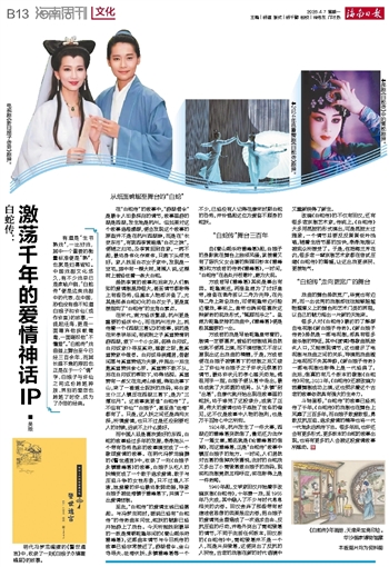 ■ 吴辰有道是“生书熟戏”,一出好戏,其中一个重要的衡量标准便是“熟”,也就是妇孺皆知。中国戏剧文化悠久,有不少戏早已是家喻户晓,“白蛇传”便是这类戏剧中的代表,在中国,恐怕没有谁不知道白娘子和许仙(或作许宣)的故事,一提起法海,更是一面唾弃他拆散鸳鸯,一面嗟叹他“不懂爱”。“白蛇传”戏曲登上舞台至今已经三百余年,而其长盛不衰的原因也正是在于一个“情”字,白娘子与许仙之间这份跨越种族、界别的爱恋也跨越了时空,成为了永恒的经典。
