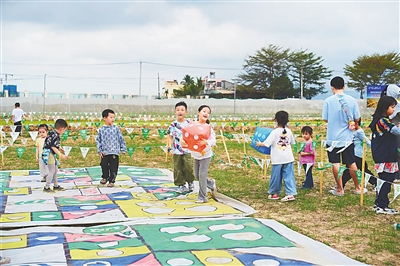 孩子们体验田间飞行棋。 本版图片均由海南南繁产业发展有限公司提供