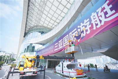 4月8日,消博会三亚国际游艇展区,工作人员推进布展工作。
