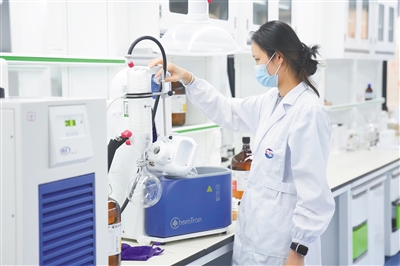 位于三亚崖州湾科技城高新区的三亚深海化合物资源中心,科研人员在实验室对深海化合物进行提纯,用于生物医药的研究。
