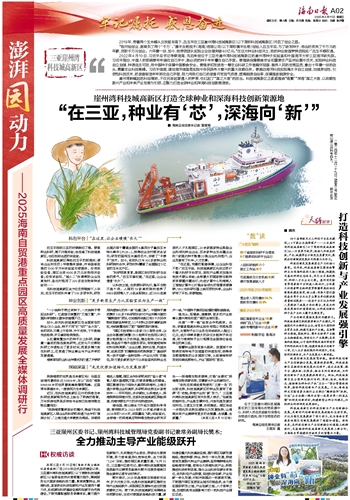 崖州湾畔崛起的科创高地,不仅托举起普通人的梦想,也扛起了“国之大者”的担当。科技城高新区正紧紧围绕“南繁”“深海”国之大者,以战略性新兴产业和未来产业发展为引领,正聚力打造全球种业和深海科技创新策源地。