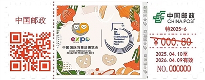 本报海口4月10日讯(海南日报全媒体记者曹马志)4月10日,第五届中国国际消费品博览会数字化彩色邮资机宣传戳在海口首发亮相,该枚邮资机戳系海南首枚彩色数字粘贴型邮资机戳。据悉,邮资机戳是一种特殊的邮戳,上面标有邮政铭记和邮资数值,通常与日戳一并加盖在邮件上,相当于该邮件已经贴上了邮票,可以正常寄送。消博会邮资机戳采用目前最新款TS71邮资机制作,每一枚面值为0.8元,使用期限为2025年4月10日至2026年4月9日,全国共发行12.1万枚。