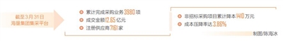 今年2月5日起,海垦集团全面实施采购业务线上化,并依托集采中心全面推进相关业务智慧化数字化发展。截至3月31日,集采平台累计完成采购业务3980项,成交金额12.65亿元,注册供应商7161家,非招标采购项目累计降本1410万元,成本压降率达3.86%。