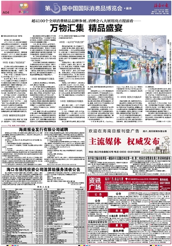 4月13日至18日,第五届中国国际消费品博览会将在海南举行。本届消博会设一个主会场和三个分展区,共有来自71个国家和地区的1700余家消费企业4100余个消费品牌参展。