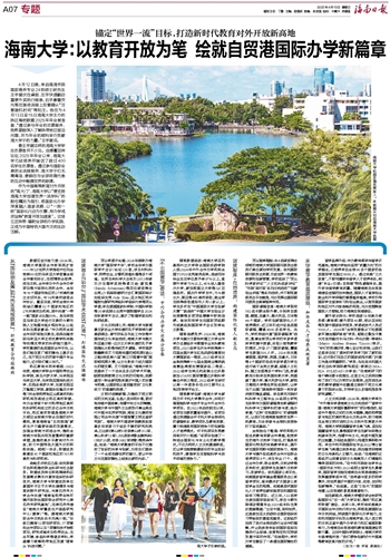 站在新起点,海南大学锚定综合性研究型国际化“双一流”大学目标,推动“热区高校联盟”建设。未来5年,学校将实施高水平国际合作交流行动计划,积极拓展国际合作交流网络,持续提升国际化办学能力,主动利用国际平台发出海南声音,在人类文明的交流互鉴中提升办学实力和区域国际影响力,为海南自由贸易港和教育强国建设贡献力量。正如中国科学院院士、海南大学校长骆清铭所言:“我们要争创新时代中国高等教育改革开放的示范。”