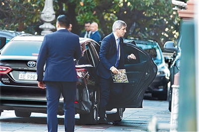4月11日,阿根廷经济部长路易斯·卡普托进入阿根廷总统府玫瑰宫。新华社发
