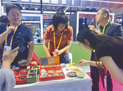 ④ 北京展区的珐琅器展台,参展观众在体验点蓝非遗技艺。海南日报全媒体记者 孙慧 摄