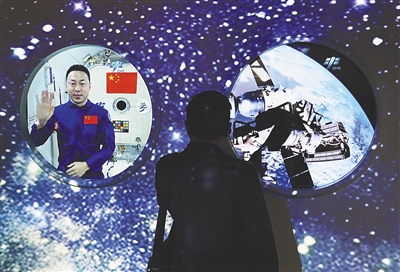 4月13日,在日本大阪,参观者在中国馆内参观游览。新华社发