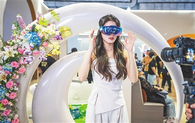 消博会消费科技展区,观众体验一款眼部按摩仪。