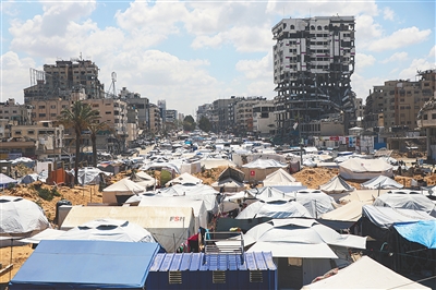 图为4月15日在加沙城拍摄的一处临时避难所。 新华社发