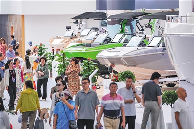 4月16日,众多观众前来消博会三亚国际游艇展,观看游艇展示。