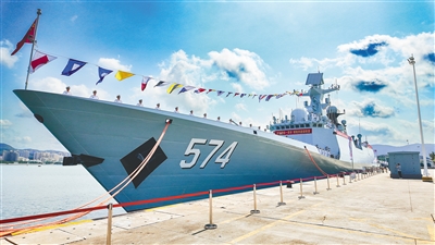 4月23日,南部战区海军某基地举行庆祝人民海军成立76周年城舰共建活动。图为三亚舰。海南日报全媒体记者 王栋田 摄