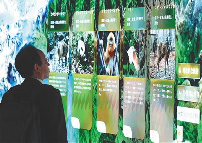 在一楼展厅,厦门筼筜湖的宜人生态、湖南十八洞村的盎然生机、塔克拉玛干沙漠的生态修复等向世界讲述着一个个“绿水青山就是金山银山”的故事,展现中国当代生态治理智慧和绿色发展理念。