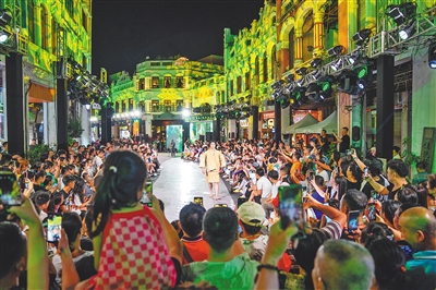 2024年4月,海口骑楼老街上演服饰光影秀。