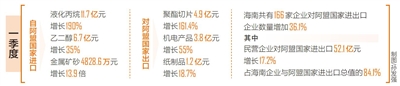 从海口海关提供的统计中可以发现,海南正充分发挥资源禀赋优势深度融入阿盟国家产业链,贸易规模不断扩大。一季度,海南自阿盟国家进口液化丙烷、乙二醇、金属矿砂等生产资料分别为11.7亿元、6.7亿元、4828.6万元,分别增长190%、35%、13.9倍;对阿盟国家出口聚酯切片、机电产品、纸制品分别为4.9亿元、3.8亿元、1.2亿元,分别增长161.4%、55%、18.7%,出口光伏产品、电动汽车等也大幅增长。