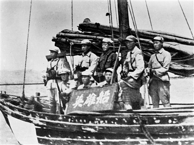 面对困局,我军渡海兵团争分夺秒筹备船只、开展训练。战士们以海为操场、以船为课堂,将涉水冲锋、水上射击等技能练到极致。1950年2月,春节期间,船工们回家过年了,第四十三军一二八师三八二团二营四连二排副排长鲁湘云带领8名战士,驾驶一艘小木帆船出海,训练战士们的远海航行技术。没有船工协助,能顺利到远离海岸的海域海练,这对鲁湘云和战士们来说,还是头一次。