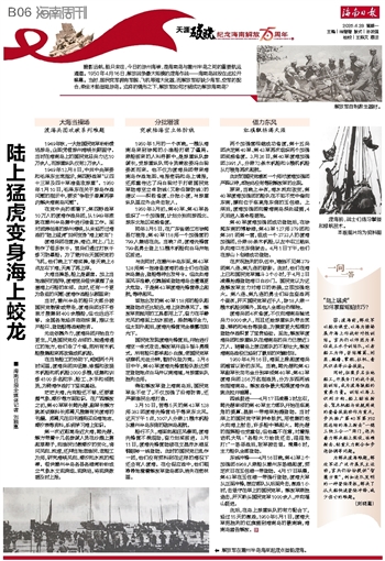 ■ 海南日报全媒体记者 刘晓惠碧影远帆,船只来往,今日的琼州海峡,是海南岛与雷州半岛之间的重要航运通道。1950年4月16日,解放战争最大规模的渡海作战——海南岛战役在此拉开帷幕。当时,国民党军拥有军舰、飞机等强大武器,而解放军却缺少海军、空军的配合,乘坐木船登陆琼岛。这样的情形之下,解放军如何才能成功解放海南岛?
