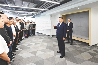 “模速空间”是上海市打造的人工智能大模型专业孵化和加速平台,已入驻企业100余家。习近平来到这里,通过视频短片了解上海市人工智能产业发展情况,察看重点孵化企业的大模型产品展示,听取相关技术研发和企业生产经营介绍。习近平对上海积极发展人工智能取得的实效给予肯定。他指出,人工智能技术加速迭代,正迎来爆发式发展,上海要总结好以大模型产业生态体系孵化人工智能产业等成功经验,加大探索力度,力争在人工智能发展和治理各方面走在前列,产生示范效应。