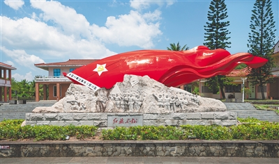 定安母瑞山雕塑《红旗不倒》。(资料图)