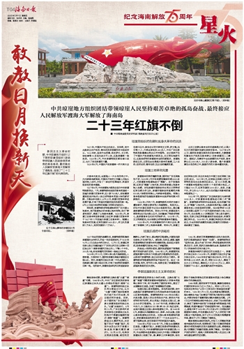 ■ 中共海南省委党史研究室(海南省地方志办公室)新民主主义革命时期,中共琼崖地方组织(以下简称琼崖党组织)团结带领琼崖人民坚持艰苦卓绝的孤岛奋战,最终接应人民解放军渡海大军解放了海南岛,创造了“二十三年红旗不倒”的光辉范例。