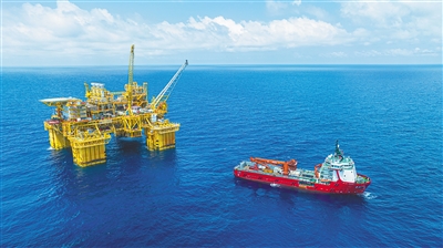“深海一号”生产平台屹立在海南东南部海域。该平台是全球首座十万吨级深水半潜式生产储油平台。海南日报全媒体记者 袁琛 摄